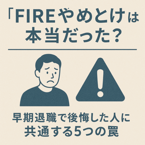 未分類「FIRE(Financial Independence, Retire Early)」──“経済的自立を果たして早期退職する”というライフスタイルは、魅力的に映ります。しかし、実際にそれを選んで「やめとけばよかった」と...